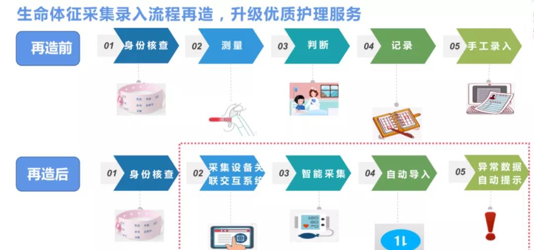 “生命體征采集與錄入”流程就在一些方案的支持下得到了非常方便的再造,其帶來的價值散見于多個醫(yī)院用戶的衛(wèi)生經濟學角度的效果探究。我們期待類似研究多多益善,基于更多的觀察與分析,來共同探索和狀貌這種工作的真實社會價值。