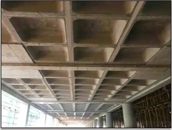 主體結(jié)構(gòu)內(nèi)堅(jiān)外美,梁柱節(jié)點(diǎn)棱角清晰。本工程在管線集中的公共區(qū)域,在結(jié)構(gòu)設(shè)計(jì)階段就提前考慮了降低主體成本和空間優(yōu)化在醫(yī)療街部位首次采用了9500m2雙向密肋梁樓蓋板,采用成品塑料模殼作為胎模,有效減少了樓板的混凝土量與樓板自重;增加室內(nèi)凈咼與柱網(wǎng)跨度,在標(biāo)準(zhǔn)層咼范圍提咼了各專業(yè)吊頂內(nèi)施 工空間,整體性能好、剛度大、抗震性能好;同時(shí)還起到隔聲、隔熱的作用,以不增加造價(jià)和實(shí)用性為選用原則。