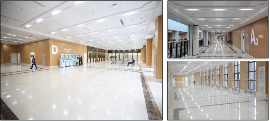 鋁板吊頂,質(zhì)感高端,干凈整潔,耐腐蝕性好,耐久性好,公共部位考慮人員比較集中,采用沖孔鋁板降噪吸音。?;u質(zhì)地堅(jiān)硬、抗壓耐磨性能優(yōu)越,釉面光澤、易于清潔維護(hù),PVC地膠采用同質(zhì)透芯,質(zhì)地柔和,耐磨防水性好,易于清 潔保養(yǎng)。公共區(qū)域墻面冰火板墻面裝飾紋路清晰、色彩溫馨,質(zhì)地堅(jiān)硬,A級(jí)防火,防撞防污。45根大理石圓柱做工考究,材質(zhì)堅(jiān)硬,亮麗光澤、莊重典雅,整體裝飾風(fēng)格協(xié)調(diào)、效果美觀。